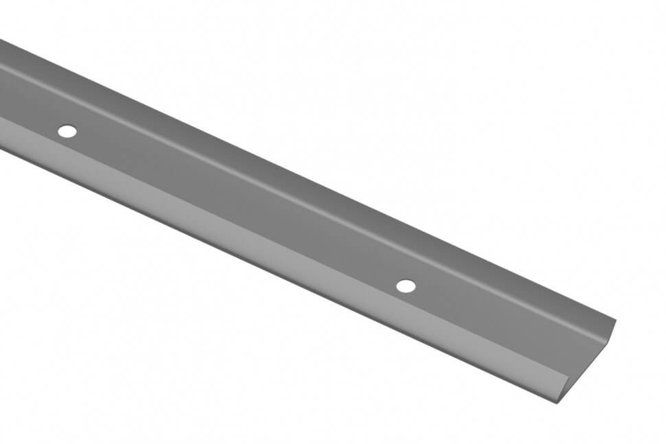 Несущий рельс имеет размер 1560х42х11 мм и изготавливается из прочной листовой стали. Он служит для крепления стоек, на которые, в свою очередь, фиксируют полки и корзины. Крепится к стене и является основанием для всей конструкции. Преимуществом навесной системы является возможность корректировать расстояние между направляющими, это упрощает процесс монтажа и позволяет исправить возможные ошибки и неточности. Монтирование происходит с помощью дюбелей и саморезов, размеры которых подбираются в зависимости от материалов стены.