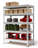 Среднегрузовые металлические стеллажи МС-Т производства завода Пакс-Металл предназначены для хранения различного рода продукции и изделий на складах, производствах, в гаражах и не только. Допустимая равномерно распределенная нагрузка на каждый ярус - не более 300 кг, нагрузка на секцию стеллажа - до 2,1 тонны.