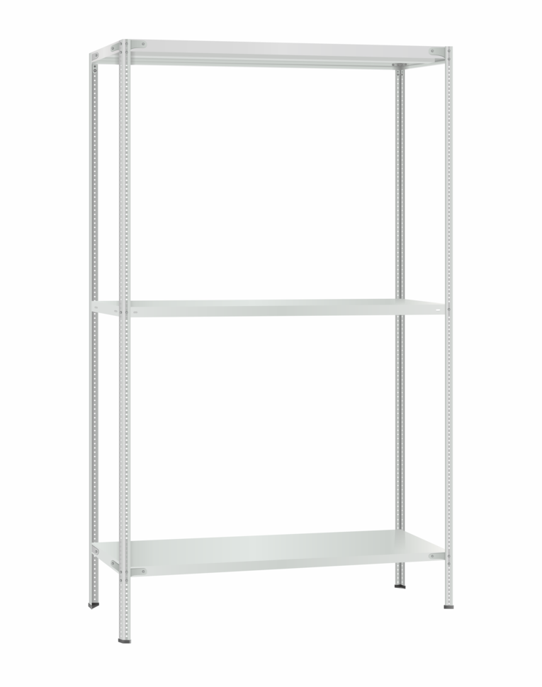 Полки МС Титан изготовлены из высокопрочной стали, покрыта полимерным порошковым покрытием светло серого цвета RAL 7035 типа шагрень
