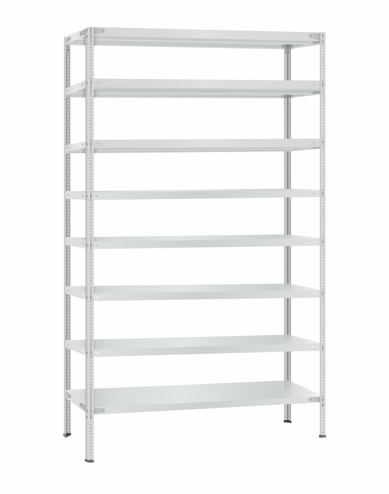 - В стандартной комплектации уголки жесткости устанавливаются только на верхнюю и нижнее полки (по 8 штук на каждую). В комплекте 16 уголков жесткости.